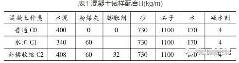 表1 混凝土試樣配合l:l(kg/m)