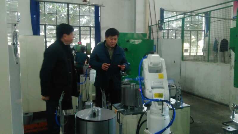 走出會(huì)議室,孫總和胡部長(zhǎng)陪同符會(huì)長(zhǎng)一行參觀公司生產(chǎn)車間,走到機(jī)加車間,符會(huì)長(zhǎng)一下子就被“機(jī)器人操作完成錐形電機(jī)定子沖槽工作”工位所吸引,孫總講,這個(gè)工位以前都是人工操作,勞動(dòng)強(qiáng)度很大,現(xiàn)在正在全力推進(jìn)工位機(jī)器人操作,不久將會(huì)全部用機(jī)器人替代。