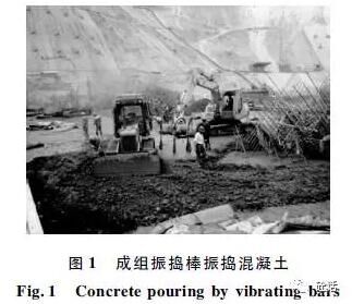 實(shí)際上,坍落度不僅只是一個靜態(tài)性能的檢測,反映不出在振動外力作用下的行為,而且坍落度值大小無法反映出拌合物塑性黏度,但是塌落時的快慢在一定程度上與可泵性相關(guān)。早先在檢測混凝土坍落度后,要用振搗棒從側(cè)面敲擊,稱為“棍度”,也是一種有效的工作度評價,再結(jié)合肉眼觀察,綜合評定混凝土的和易性,這種方法應(yīng)該說還是比較全面的。當(dāng)然,對于振搗作用的評價需要例如混凝土維勃稠度儀簡稱VB儀)來檢測。筆者前些時在一個水電工程施工單位時,建議用VB儀來評價拌合物的工作度,因?yàn)楝F(xiàn)行用50~70mm坍落度來評價的做法很脫離施工現(xiàn)場用成組振搗棒振搗作用的實(shí)際(見圖1)。