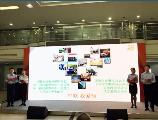 時(shí)針指向9點(diǎn)28分,中聯(lián)重科25周年司慶主題活動(dòng)正式開始,一曲《我和我的祖國(guó)》和《中聯(lián)頌》讓全體中聯(lián)人心潮澎湃,思緒萬(wàn)千。