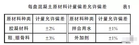 《混凝土質量控制標準》(GB50164-2011)第6.3.2條每盤混凝土原材料計量的允許偏差應符合表1的規(guī)定,原材料計量偏差應每班檢查1次。