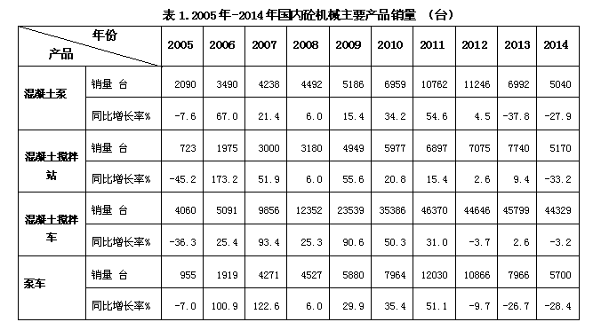 1)2014年中國砼機(jī)械主要設(shè)備保有量