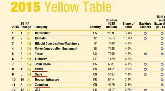 2015年全球工程機(jī)械制造商50強(qiáng)排行榜中國企業(yè)榜單
