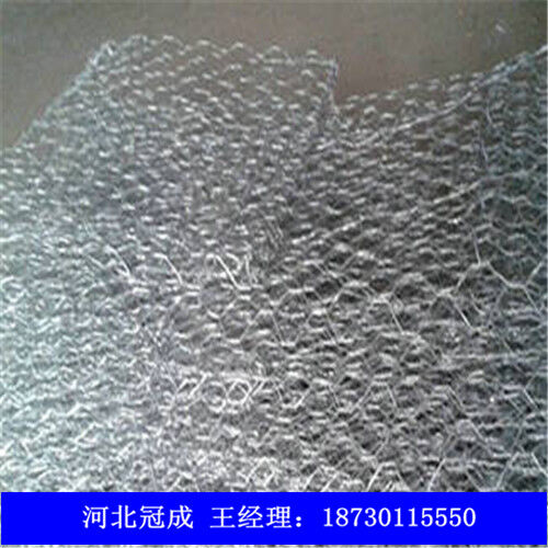 六角網(wǎng)墊由機(jī)械編制而成的六邊形網(wǎng)片組合的一種結(jié)構(gòu)體,高度為小于30cm??梢詾閱卧\體,也可為用間隔網(wǎng)片分隔成的多格籠體。按照ASTM A975-97規(guī)范組裝而成。工程現(xiàn)場填充石料組裝形成柔性的、透水的、整體的支擋結(jié)構(gòu),用于生態(tài)防護(hù)工程。網(wǎng)絲采用高鍍鋅鋼絲或者10%鋁鋅合金鋼絲,如果環(huán)境條件比較惡劣,污染比較嚴(yán)重,可以在鋼絲的表面涂塑(PVC),以增強(qiáng)網(wǎng)絲的抗腐蝕性能。
