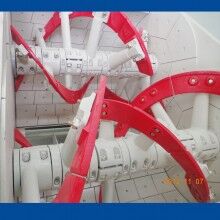電動(dòng)潤滑泵通過四個(gè)泵芯分別向四個(gè)軸端供油。油脂壓力高,檢修方便,粘度大且密封可靠,同時(shí)耗油量小,可有效減少油脂對(duì)混凝土的污染。