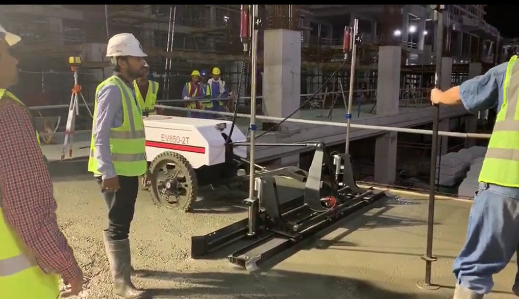 在對砼進(jìn)行整平時,混凝土激光整平機(jī)始終是勻速行駛的施工狀態(tài),以每分鐘4000次的高頻振動器,讓整平頭振動板產(chǎn)生均勻的高頻振搗,使得混凝土地面更密實均勻。