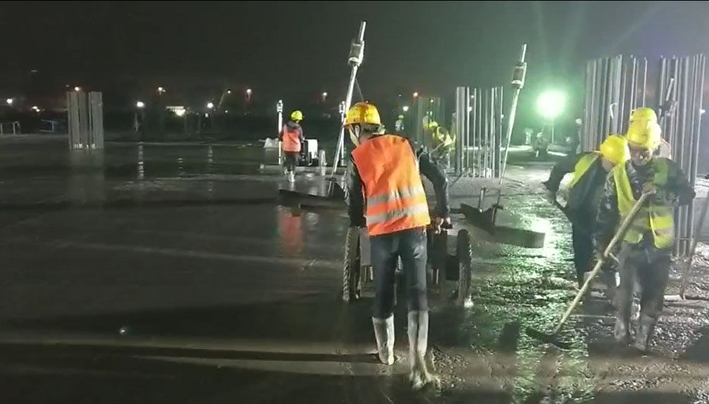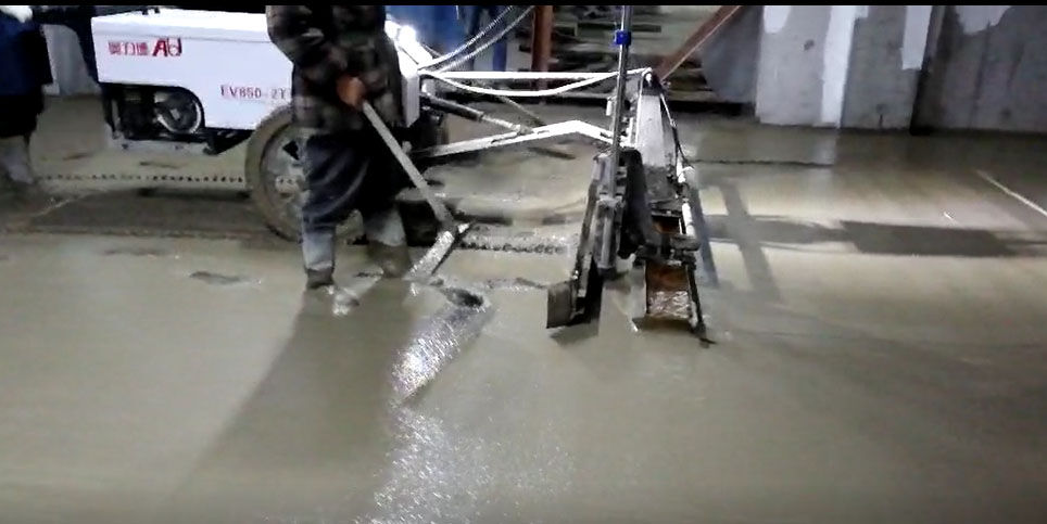混凝土激光攤鋪機是用刮板將高出的混凝土帶走并初步刮平,達到設計要求的標高。液壓驅(qū)動振動馬達產(chǎn)生震動,頻率為4000次/分鐘,帶動整個振動板一起對混凝土產(chǎn)生振搗。激光攤鋪機找平不需要拉控制線,也不需要支側模板來控制地面標高,而由攤鋪機上的激光測控系統(tǒng)實時控制,只要激光發(fā)射器不受干擾,無論攤鋪機移動到哪里,都能確保鋪筑后的地面整體上的標高不受影響。