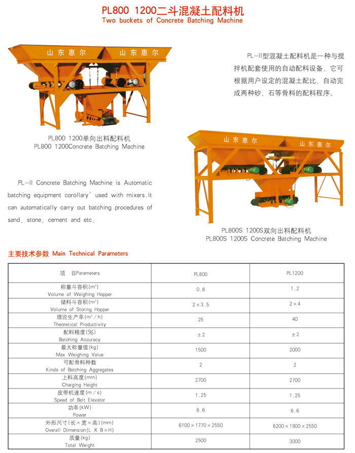歸屬行業(yè):PL800二斗混凝土配料機