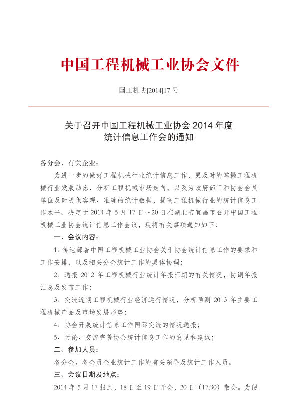 國工機(jī)協(xié)2014年17號(hào)文協(xié)會(huì)統(tǒng)計(jì)工作會(huì)議通知